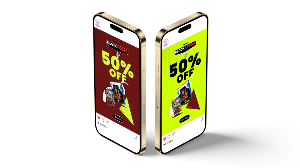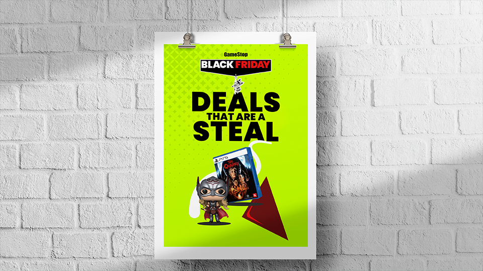 Developed visual mockups for GameStop’s Black Friday holiday campaign, including logo treatments, print materials, color palette, social media assets, and promotional emails. Also designed holiday-themed gift cards available for purchase both in-store and online.
