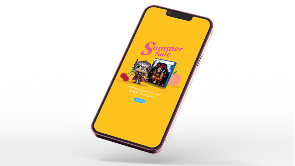 Created original artwork for GameStop’s annual Summer Sale, executed across a range of marketing channels including email, social media, web, and print. Responsibilities included logo design, development of the campaign’s color palette, and creation of custom illustrations to support a cohesive visual identity across all platforms.